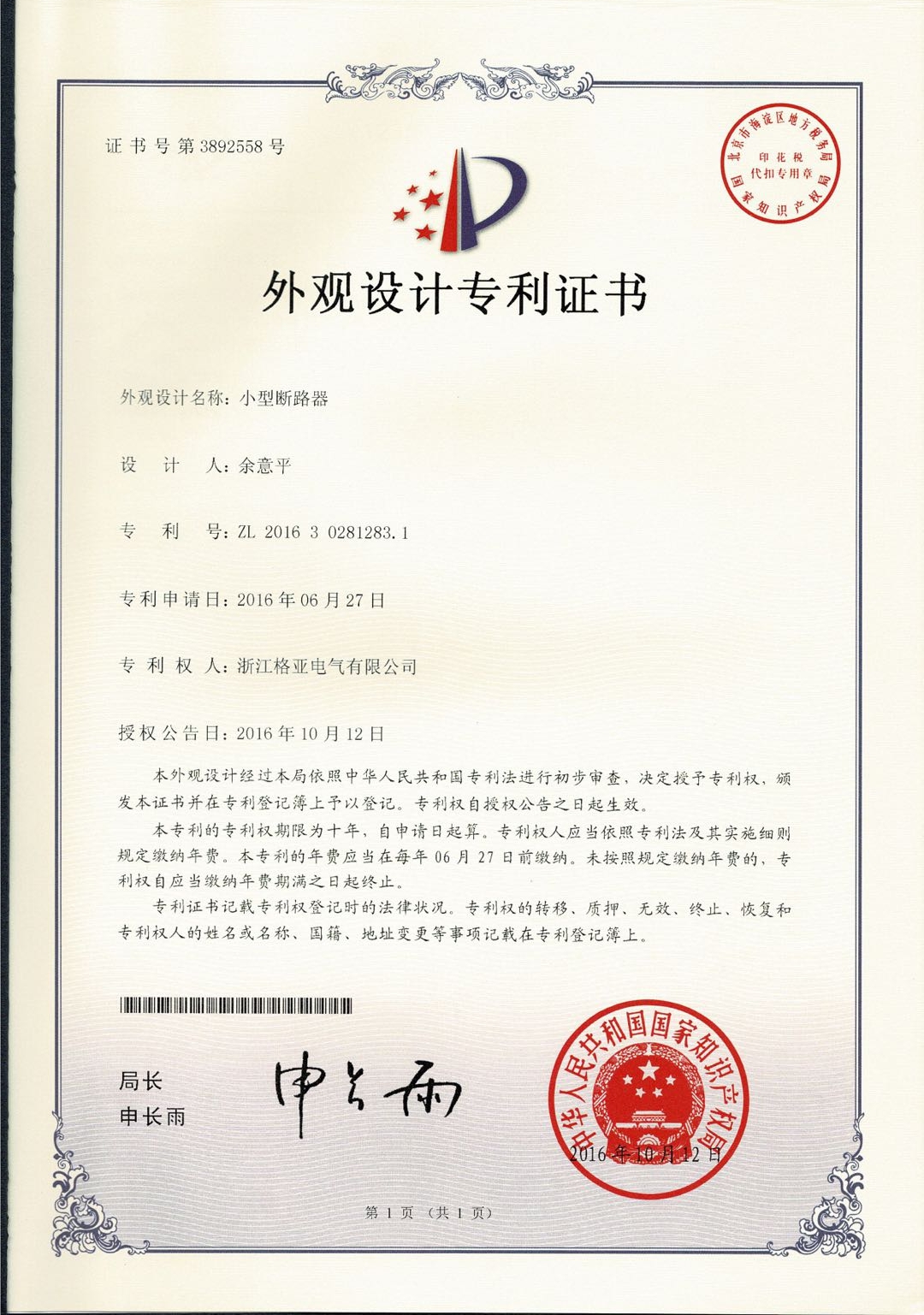 小型斷路器外觀設計1
